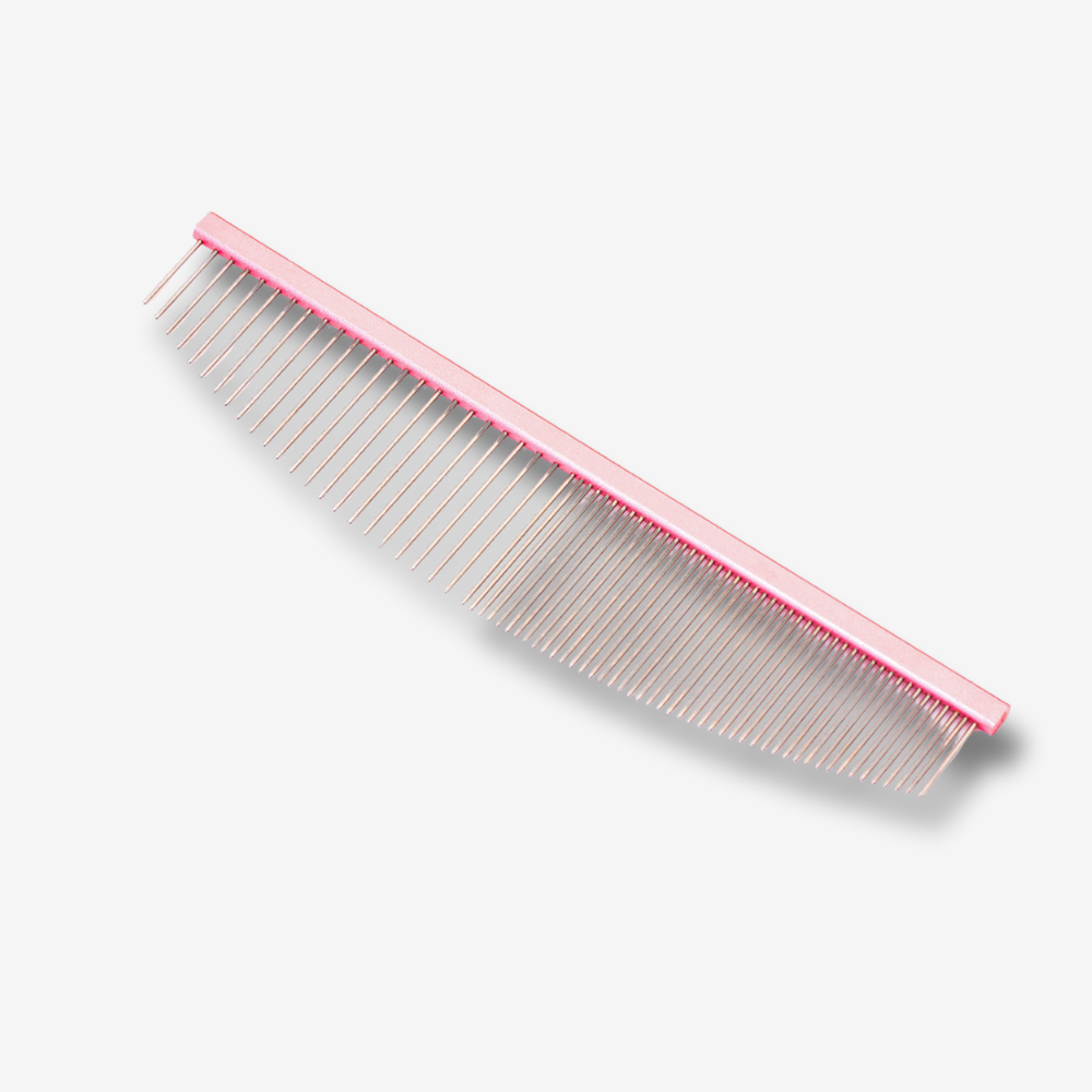 Der halbrunde Kamm ist vielseitig einsetzbar für Kopf, Beine und Körper. Mit seinen abgerundeten Zinken entfernt er sanft Knötchen, ohne die Haut zu reizen. Die kurze Seite ermöglicht ein präzises Greifen des Fells vor den Augen, um auch sensible Stellen schonend zu pflegen. Ideal für die gründliche Fellpflege.